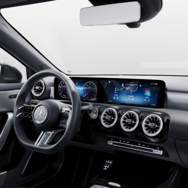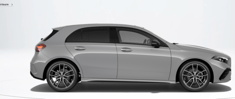 Le design extérieur se caractérise par des lignes raffinées et une silhouette moderne, typiques de la Classe A, avec des jantes alliage de série et un style affirmé. L’habitacle offre un confort haut de gamme pour cinq personnes, des matériaux de qualité et un ensemble d’équipements technologiques complets : système d’infodivertissement à écran tactile, interface multimédia intuitive, aides à la conduite avancées et systèmes de sécurité intégrés.